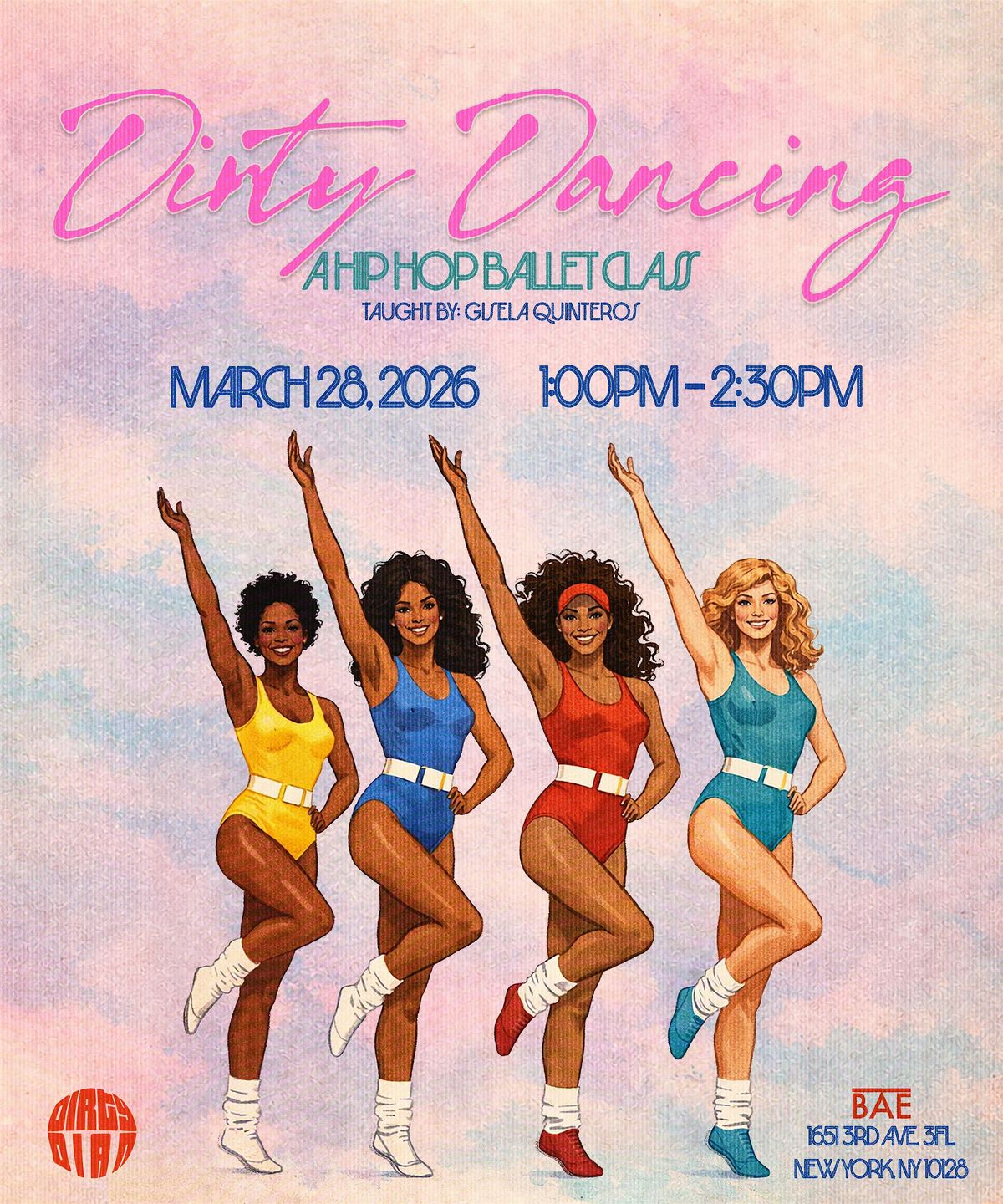 In recognition of Women's History Month Dirty Dian presents "Dirty Dancing" a fundamentals hip-hop ballet class. Taught by instructor Gisela Quinteros, you will be introduced to the core movements and artistry of ballet paired with lovely hip-hop melodies. Come ready to dance, explore your feminity, expand your confidence, feel sexy, and most importantly have fun.