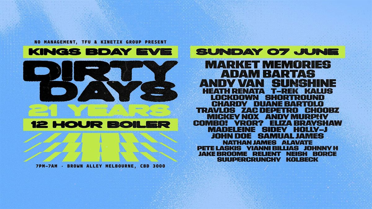 Dirty Days | 21 Years | Boiler Room Special - Kings Birthday Eve, Sunday 7th of June
