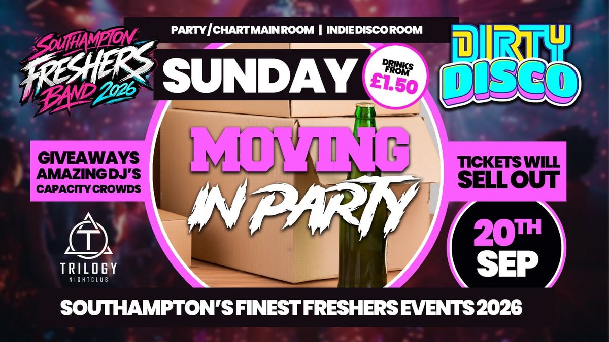 MEET NEW FRIENDS AND COURSE MATES!! πAs we all party hard to start Freshers 2026 in style!!π¦ DIRTY DISCO: THE OFFICIAL MOVING IN PARTY | SOUTHAMPTON FRESHERS 2026 π¦Welcome to Southampton! π₯³ Youβve unpacked the boxes (or just shoved them under your bed), met the new flatmates, and now itβs time to hit the dancefloor!Join us on Sunday 20th September at Trilogy Nightclub for the absolute BIGGEST welcome to the city. This is the ultimate ice-breaker and the ONLY way to kick off your university experience! π» Make some memories, meet your new best mates, and experience Southampton's finest Freshers events.π¨ WARNING: TICKETS WILL SELL OUT! π¨