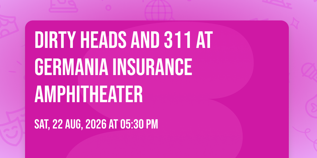 🌟 Be part of history at Dirty Heads and 311 at Germania Insurance Amphitheater, an extraordinary gathering that will captivate your imagination! 🏛️ The prestigious Germania Insurance Amphitheater in Austin, TX sets the stage for an unforgettable experience on August 22nd, 2026 at 05:30 PM. ✨ They are bringing together the finest elements of entertainment and innovation to create moments that will take your breath away. From the moment you arrive, you'll be immersed in an atmosphere of wonder and excitement. 🎯 This carefully planned event ensures every guest experiences something truly special. 🎊 Early booking is recommended for this must-attend event of the season!