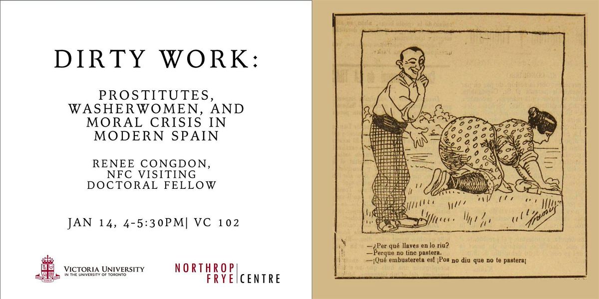 This talk explores the symbolic entanglement of two figures that haunted the bourgeois imagination in late 19th- and early 20th-century Spain: the prostitute and the washerwoman. While the former has received substantial scholarly attention, the latter has been less studied – this even though she was similarly construed as being immoral, sexually transgressive, and a threat to public order and decency. In this paper, I argue that the association of the two emerged in part due to the material similarities of their labour. Both washerwomen and prostitutes occupied public space in ways deemed improper for women and that rendered their bodies hypervisible and subject to frequent eroticization. Drawing on print and popular culture—including postcards, satirical sketches, and popular song lyrics—I examine the scopophilic representations of washerwomen that circulated widely during this period as well as the ways in which this symbolic overlap manifested in legal records and was subsequently incorporated into an expanding state disciplinary apparatus attuned to bourgeois moral interests.