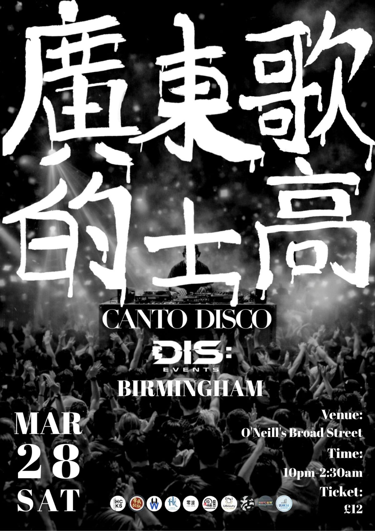 🪩 DIS: CANTO 廣東歌的士高 // BIRMINGHAM 站 2.0經過上次全場爆滿、嗌到聲沙嘅一晚,DIS 決定再次殺入 Birmingham!【活動詳情 EVENT INFO】📅 DATE: 28/03 (Sat)⏰ TIME: 10:00 PM – 2:00 AM📍 LOCATION: O’Neill‘s – Birmingham (Broad St, B1 2HF)【當晚亮點 HIGHLIGHTS】MUSIC: 廣東歌放題 — Pop / Hip-Hop / R&B / EDMDRESS CODE: Hong Kong Style (港風)ENTRY: 18+ Only (Must bring Photo ID)🤝 合作夥伴 SUPPORTING PARTNERS▫️ 零渡文化 PierZero Culture▫️ U Beauty Nottingham▫️ Go Owl Entertainment▫️ 活 Hair Salon▫️ 港味茶餐廳▫️ 100度 BBQ Music Bar🎓 學生會合作夥伴 STUDENT SOCIETY PARTNERS▫️ University of Birmingham Hong Kong Cultural Society▫️ Nottingham Hong Kong Student Society▫️ Warwick Hong Kong Society▫️ Warwick HK PASS▫️ ULHKSA🎟 票務資訊 TICKETSStandard: £12VIP: £15Door: £20