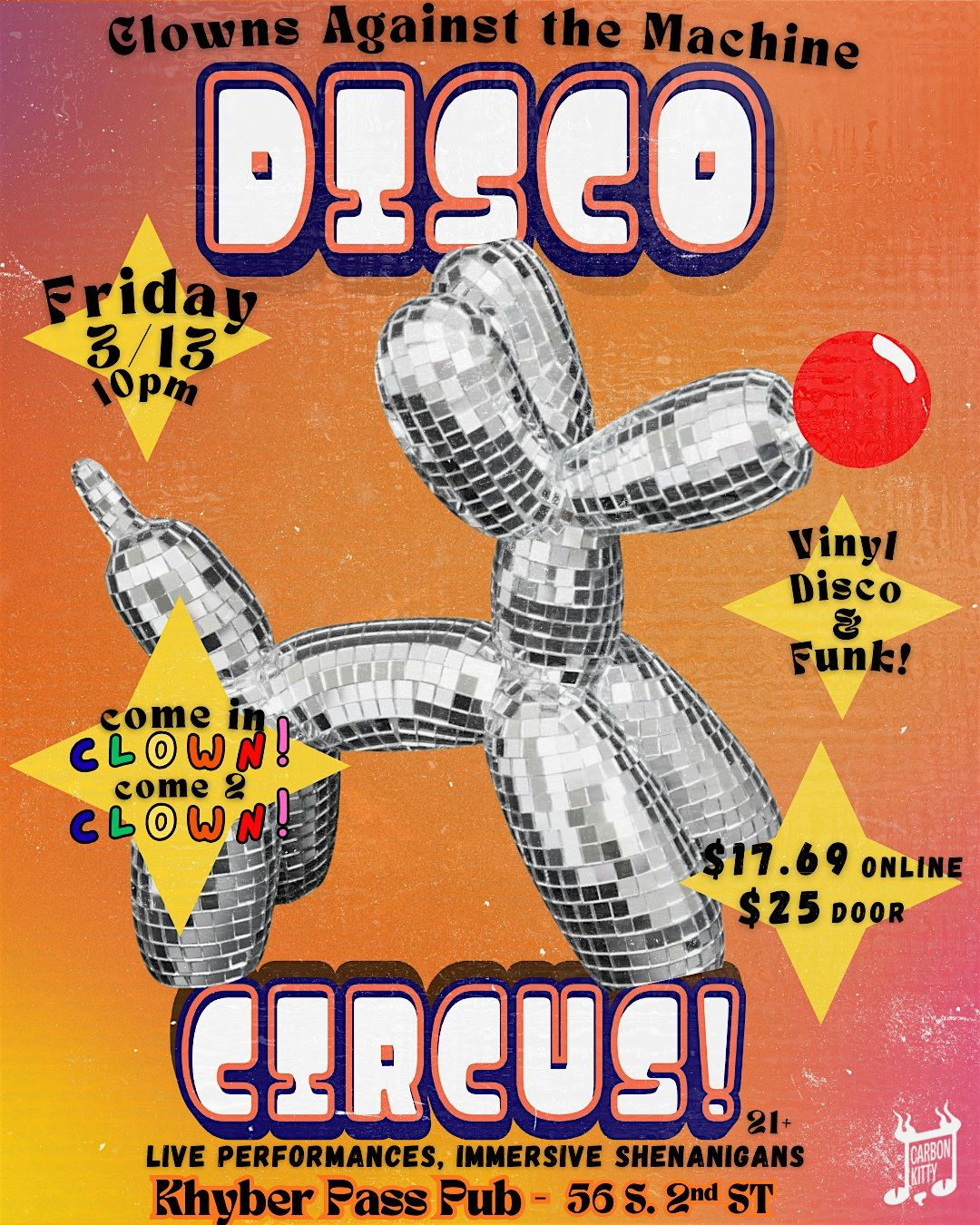 Gogo, circus, sideshow, clowns, disco,funk , and house music all nite long!