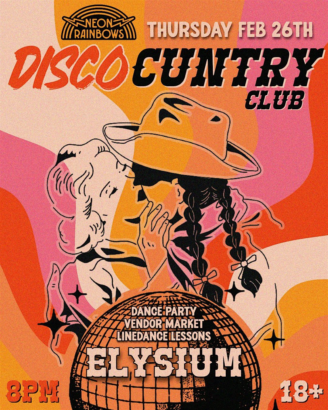 Neon Rainbows' DISCO CUNTRY CLUB is BACK! This one is for the sapphics & their lovers. Bust out your Disco Boots!