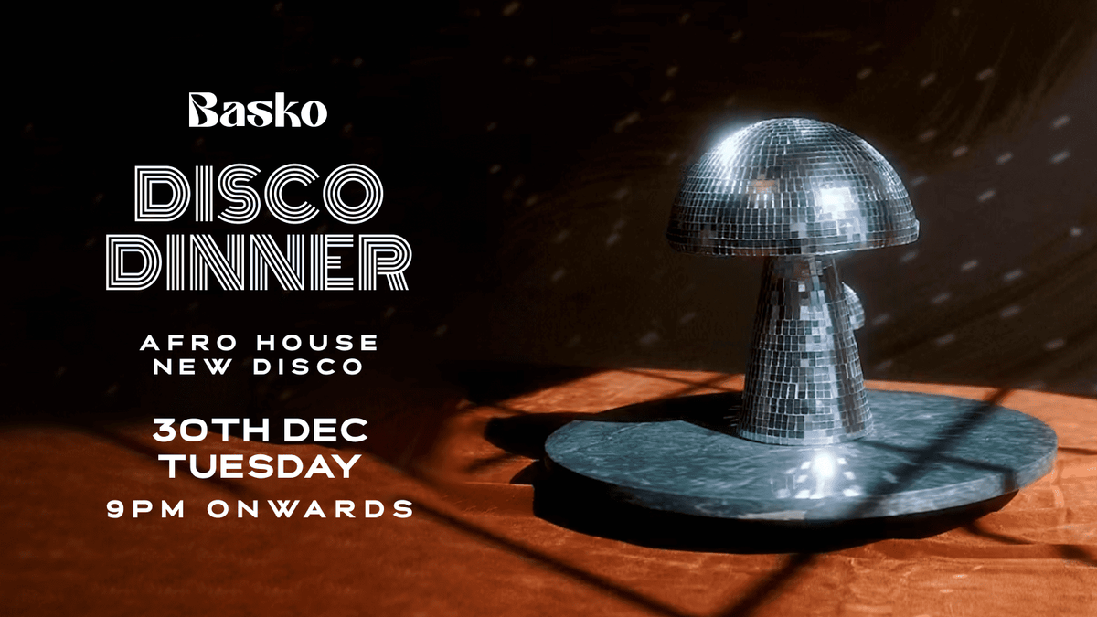 Step into a night where dinner meets the dance floor. Disco Dinner at Basko blends elevated dining with infectious disco energy, set against a backdrop of Afro House and New Disco rhythms.On Tuesday, enjoy signature cocktails, and a music-led atmosphere that builds through the night. Think warm lighting, polished tables, flowing drinks, and beats designed to keep the mood high while conversations and celebrations unfold effortlessly.Whether you’re dining with friends or easing into a late-night groove, Disco Dinner at Basko is where flavour, music, and movement come together for an unforgettable evening.Event Highlights🪩 Afro House & New Disco soundscape🍸 Signature cocktails & premium pours✨ Late-night, high-energy Basko ambienceJoin us for a night that starts with dinner and ends on the dance floor — Disco Dinner at Basko.