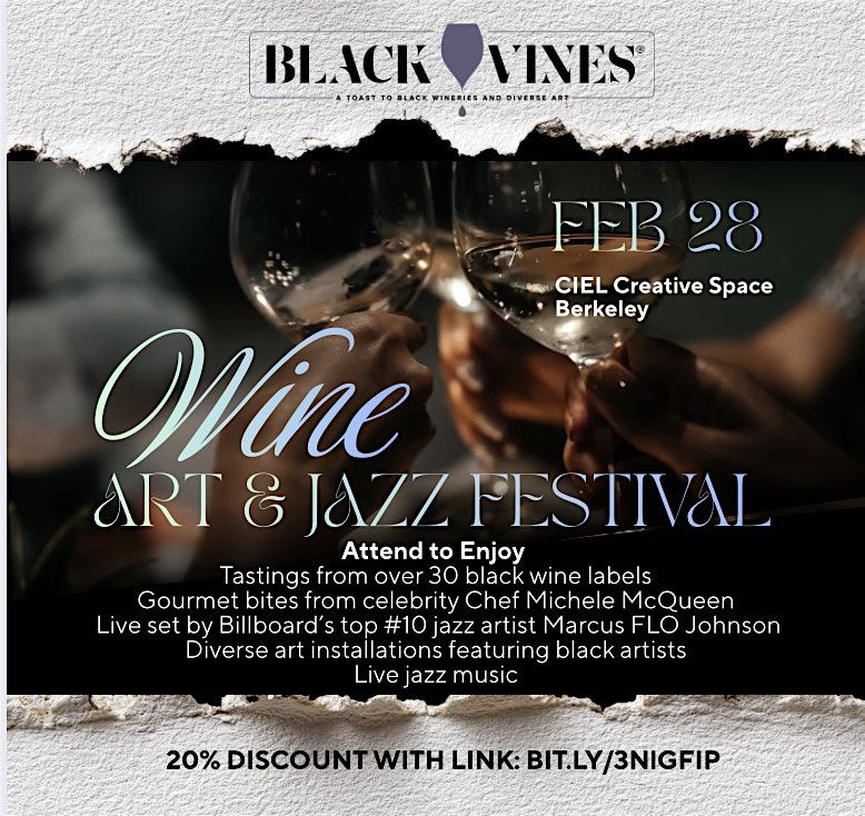 Enjoy wine from 30 Black wine makers, gourmet bites, live jazz and art!