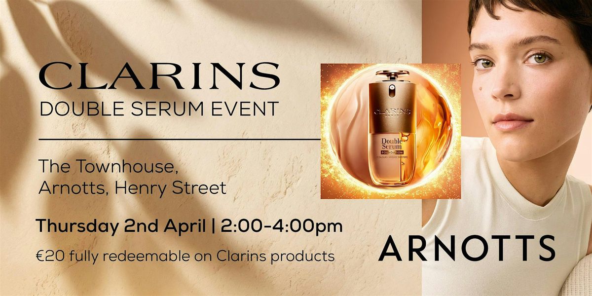 Terms and conditions: €20 ticket is redeemable against Clarins products on the day of event in Arnotts stores only. By purchasing ticket(s) for this event you agree (on your own behalf and on behalf of any guests attending with you) to be bound by Brown Thomas Arnotts Terms & Conditions which can be found at