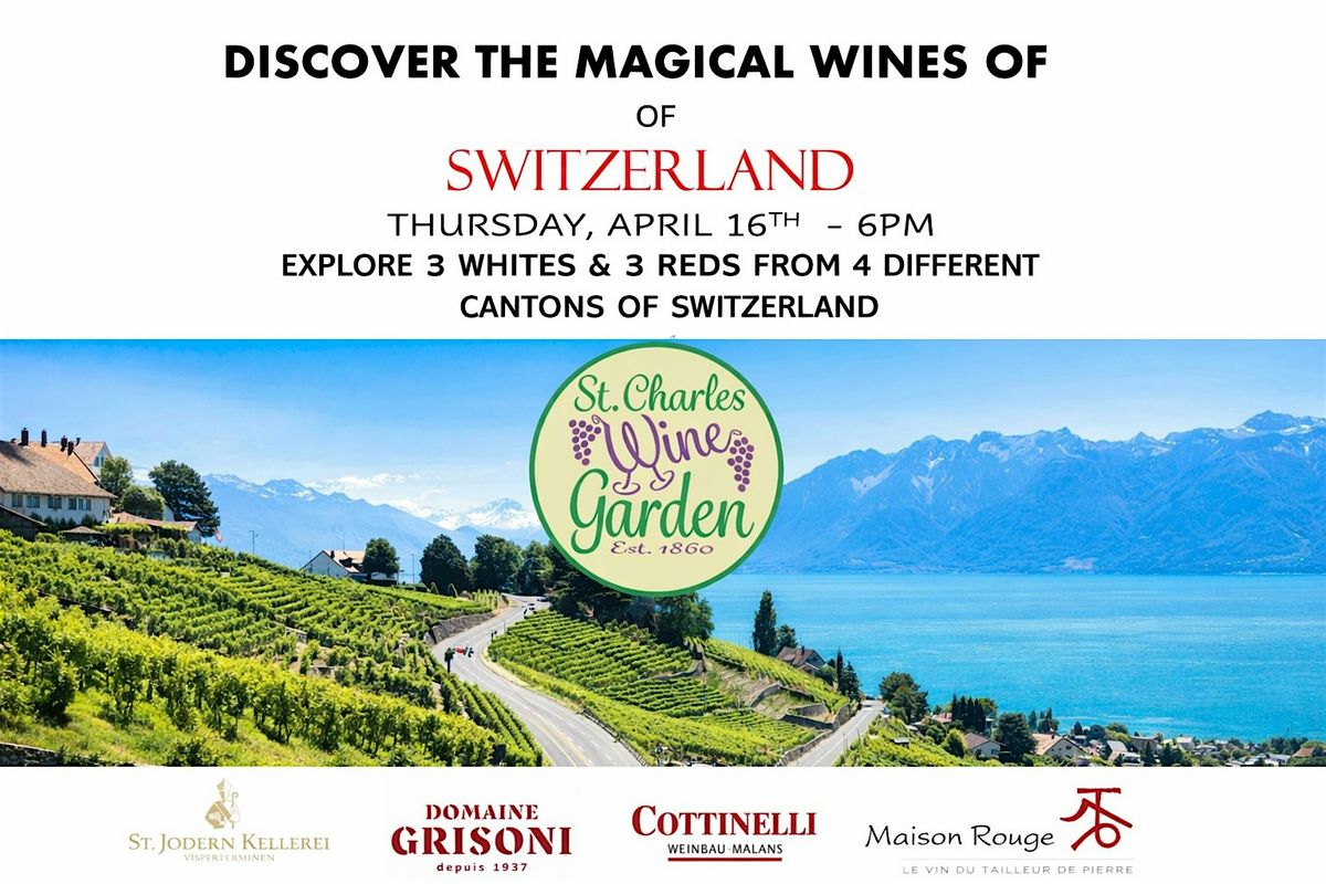 Join us for a rare and unforgettable evening as we take you on a journey through the breathtaking vineyards of Switzerland—right here in St. Charles.