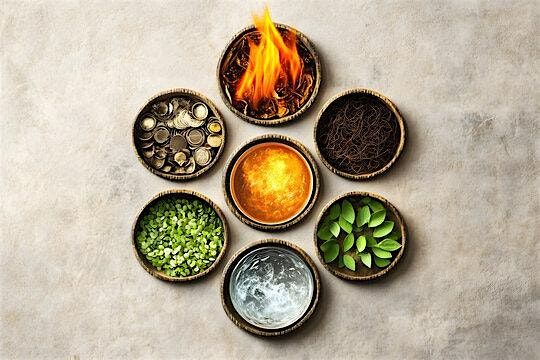 Info: Reviewing the Koshas, Elements, Attributes and Doshas.
