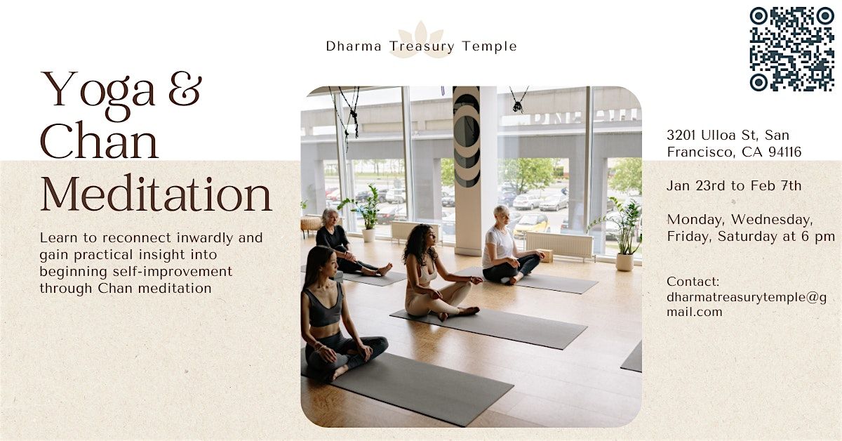 Step into a quiet space in San Francisco where body and mind can truly settle. Each session combines yoga stretching to relax the body, guided Chan meditation to reset the mind, and a short instructional talk on how to practice with greater clarity and consistency. You will learn to reconnect inwardly and gain practical insight into beginning self-improvement through Chan meditation.