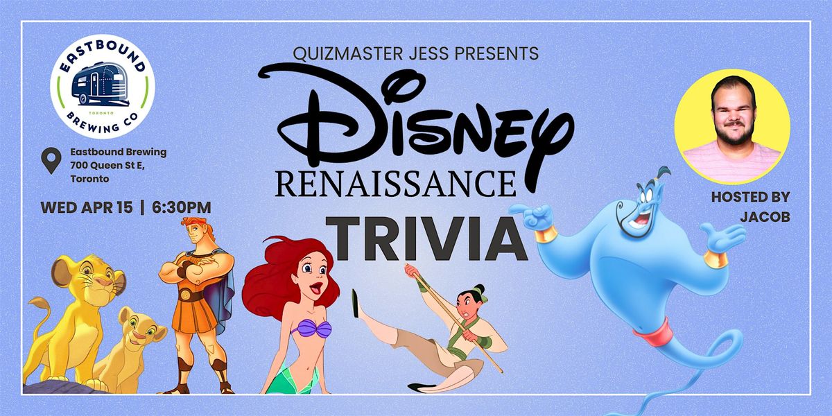 Join us for Eastbound Brewing Co's FIRST Disney Trivia! Questions will be pulled only from the movies from the Renaissance Era (full list at the end).