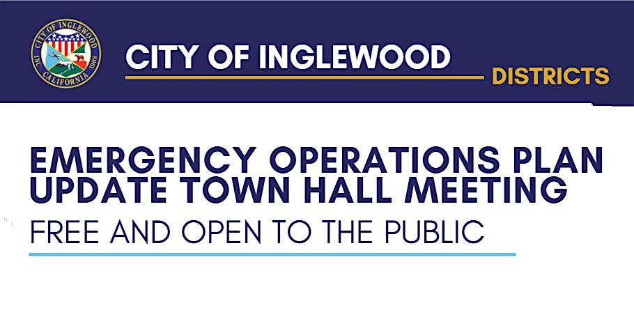 The City of Inglewood Office of Emergency Management (OEM) invites you to attend the District 3 Community Town Hall as part of the City’s Emergency Operations Plan development.