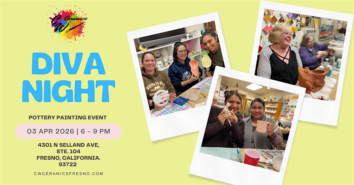 Join us for a 'divas only' evening of (non-alcoholic) drinks, dinner, dessert and of course painting! Choose from our extensive collection of items to paint, with prices starting at $15.