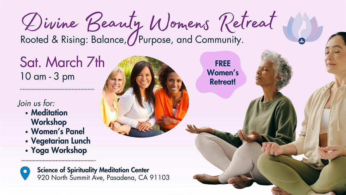 Join us for a nourishing and uplifting day designed to support women in reconnecting with themselves, finding balance, and building meaningful community. The Divine Beauty Women’s Retreat offers a peaceful space to pause, reflect, and rise—rooted in inner stillness and shared purpose.Throughout the day, you’ll enjoy guided experiences that support emotional, mental, and spiritual well-being, along with opportunities to connect with other women on similar paths.