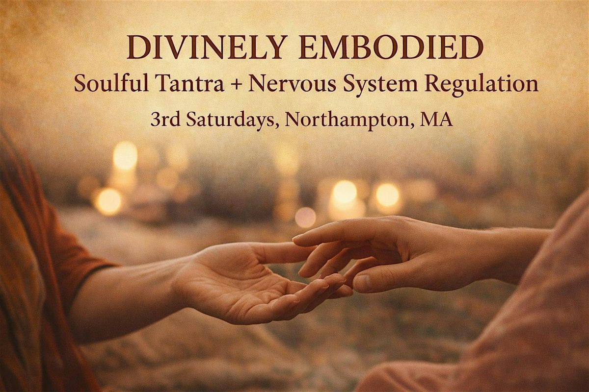 Divinely Embodied is a monthly immersion blending tantra, somatic attunement, authentic relating, and nervous system regulation to invite you into deep resonance with your Self and each other.