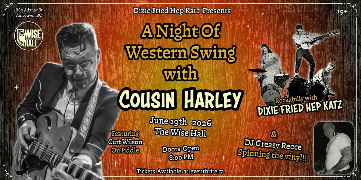 A Night Of Western Swing with Cousin Harley featuring Curt Wilson, Dixie Fried Hep Katz, (Rockabilly) & DJ Greasy Reece at the Wise Hall.About this Event
