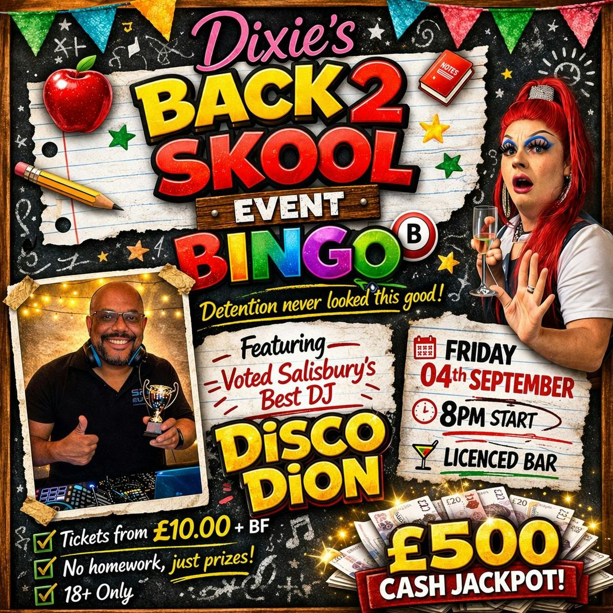 Join Dixie for a night of chaos, laughs, and bingo like you’ve never experienced before. Expect outrageous entertainment, big energy, and a room full of people ready to misbehave — all with a guaranteed £500 jackpot up for grabs 👀