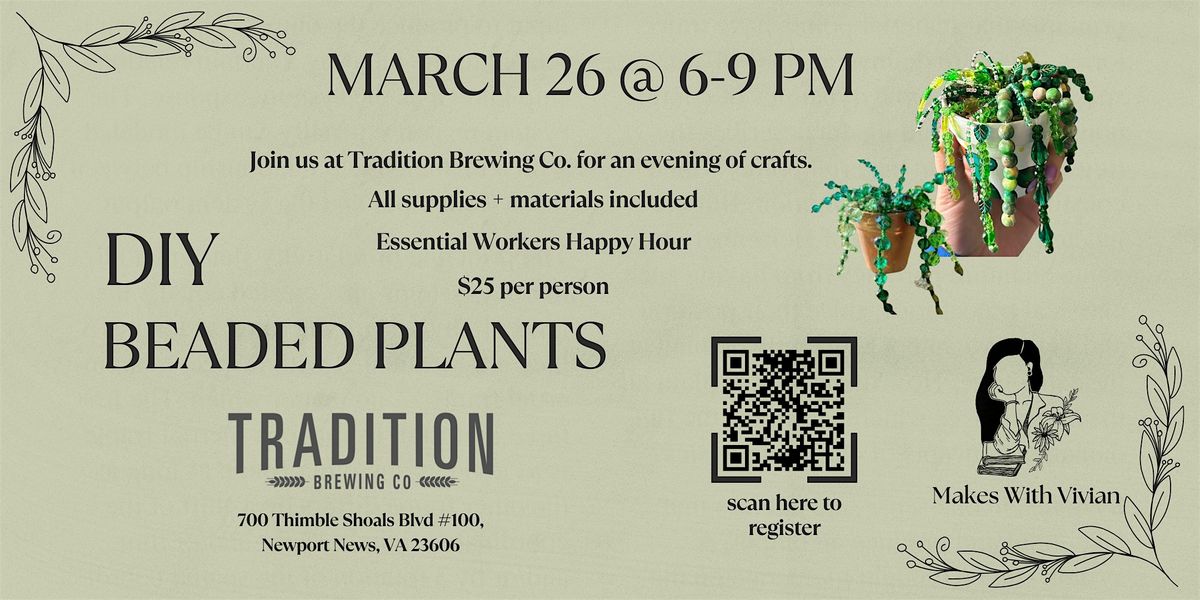 Join us at Tradition Brewing Co. on March 26, 2026 at 6-9 PM for a fun evening of crafts and craft beverages!