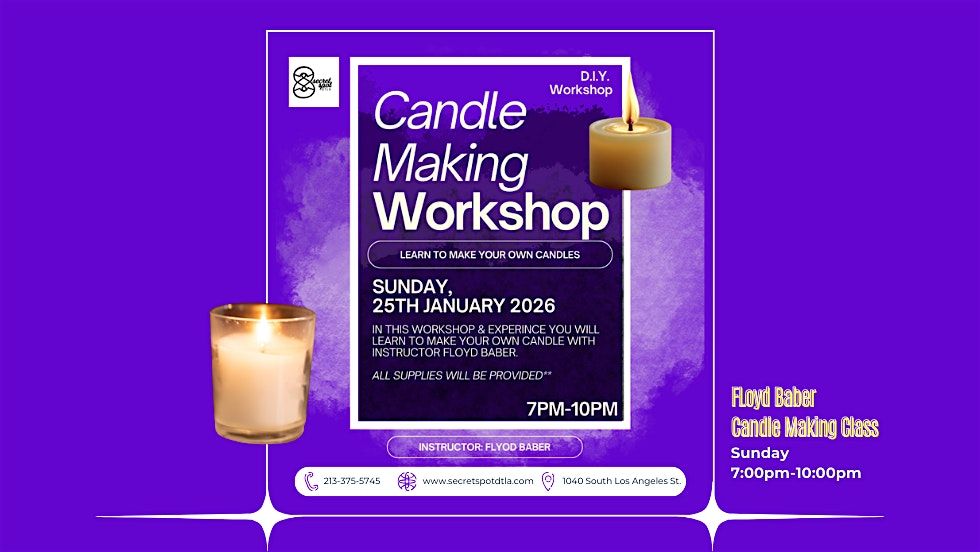 This experience is super DIY-friendly — perfect for beginners, couples, creatives, or anyone wanting to tap into a relaxing new craft. You’ll design, pour, and personalize your candle, and take home your finished creation at the end of the night.