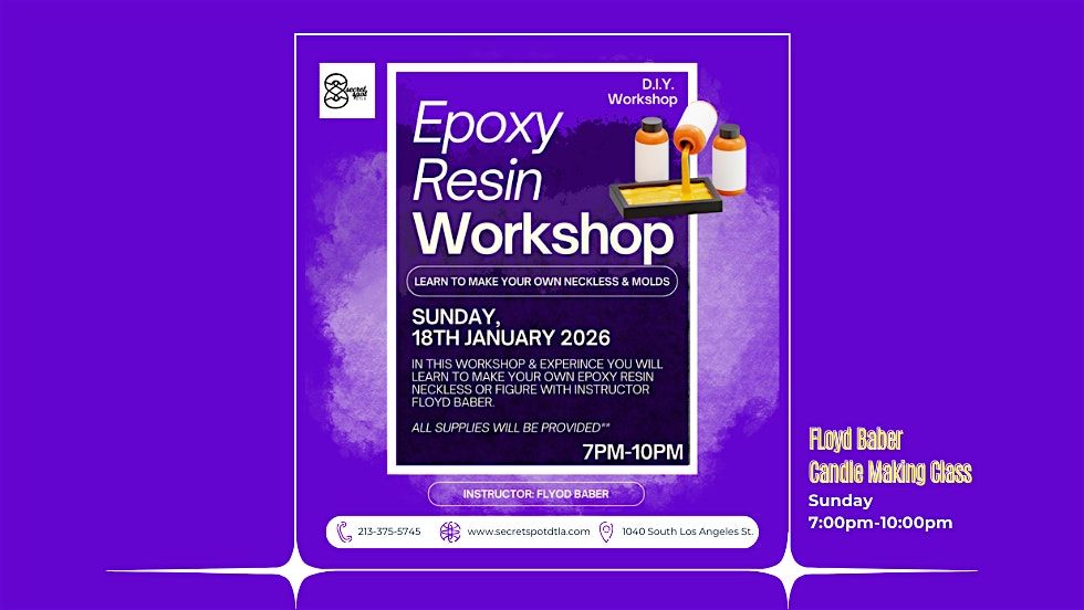 Unlock your inner maker and learn the art of epoxy resin with instructor Floyd Baber. In this hands-on workshop, you’ll design and create your own custom resin necklace or figurine from scratch. We’ll walk you through every step of the process and UV-cure your piece on-site, so you get to take home a finished creation the same night. ✨