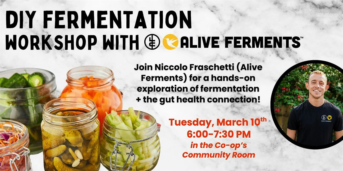 Join us for a hands-on DIY fermentation workshop with Niccolo of Alive Ferments!