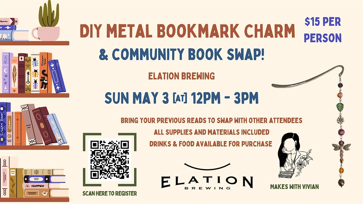 Join us at Elation Brewing on May 3, 2026 at 12-3PM for a fun afternoon of crafts, book swapping, and craft beverages!