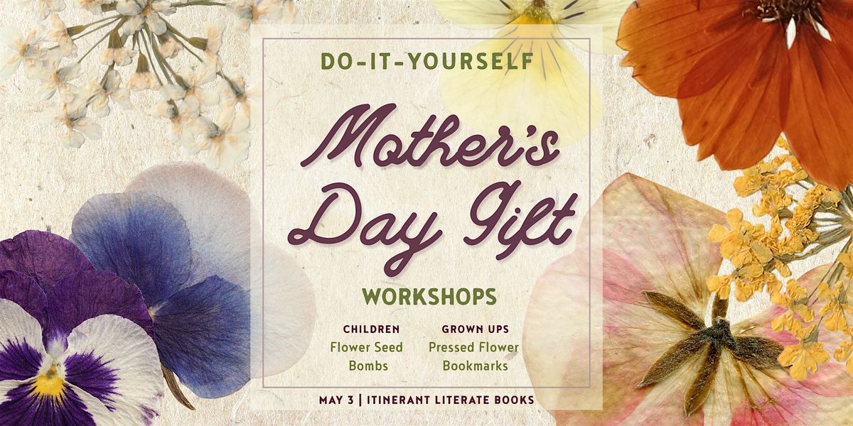 Join us Sunday, May 3, in the backyard for a free two-part gift workshop for grown-ups and kiddos alike. Adults will create beautiful pressed-flower bookmarks to pair with the perfect book for Mom, while kids get crafty making flower seed bombs she can plant and enjoy.