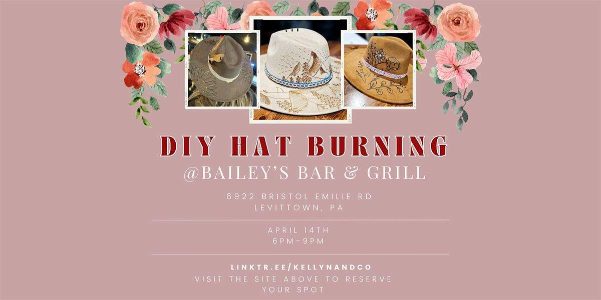Come join us for a fiery fun time at BAILEY'S BAR & GRILLE! Bring your creativity and personalize your own hat using the art of pyrography. This hands-on event will let you burn or paint unique designs onto your hat, creating a one-of-a-kind accessory. No experience needed - our instructors will guide you through the process with preset designs. Or, if you're interested in designing freehand we welcome it. Don't miss out on this opportunity to make a statement with your headwear! 1 hat per ticket will be provided at the event. These are wide brim Fedora style hats (think Lainey Wilson) with adjustable sizing. Multiple colors to choose from.
