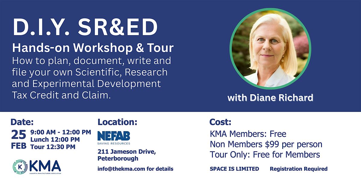 Most manufacturers do not take advantage of the SR&ED tax incentive because they have had a bad experience or they think it is too hard. If this is you, then you need to take the workshop. A hands on workshop with Diane's expertise has helped many local manufacturers succeed in their applications. Begin your application in this workshop!