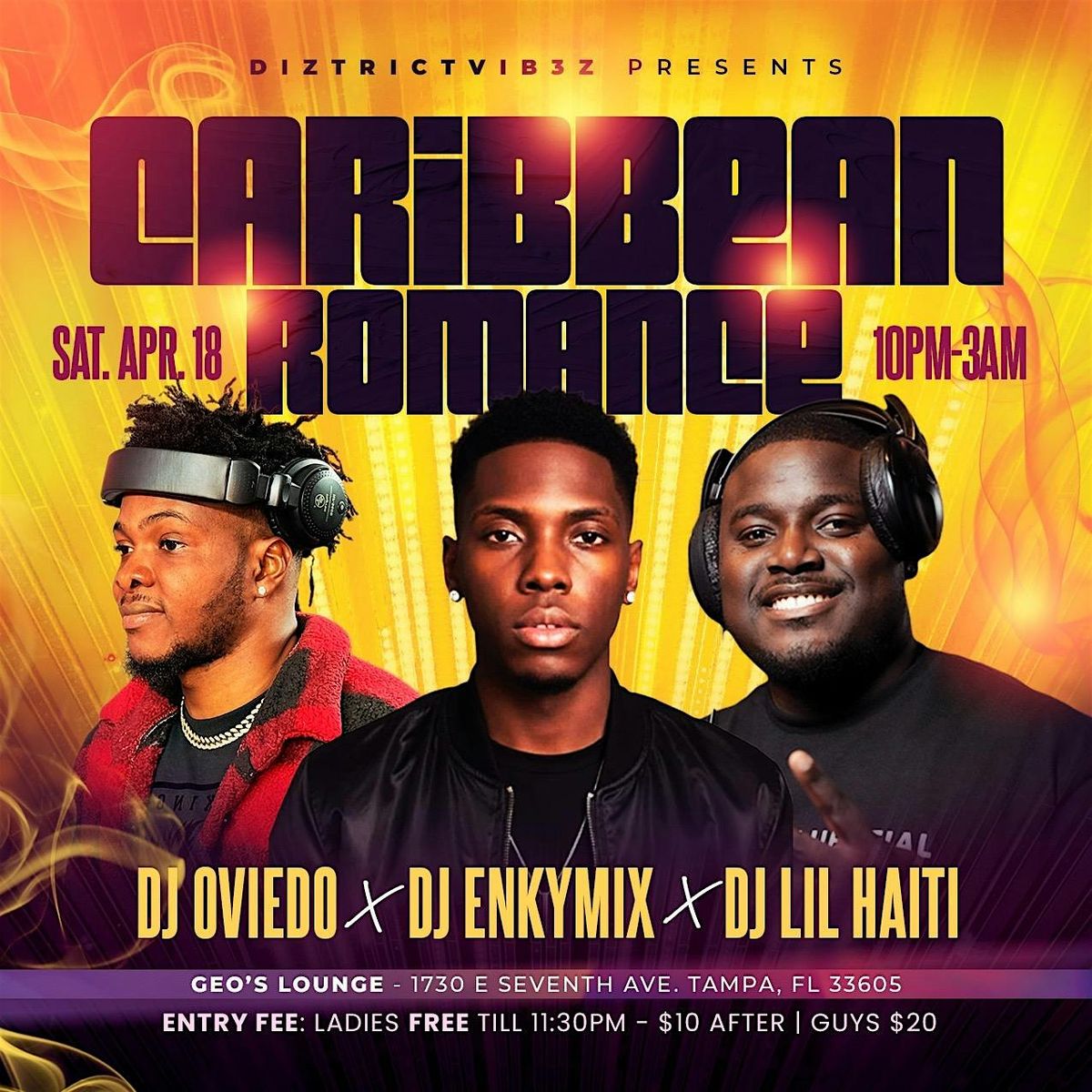 Get ready to vibe with smooth Caribbean beats and good vibes all night long! SOUND BY DJ OVIEDO DJ ENKYMIX DJ LILHAITI