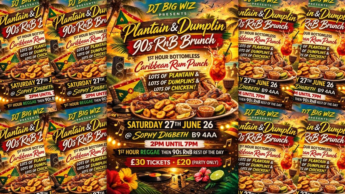 DJ Big Wiz presents Plantain & Dumplin 90s Rnb Brunch. Lots of dumplin, chicken & plantain. Bottomless Carribbean Rum Punch for the 1st hour grenadian style!