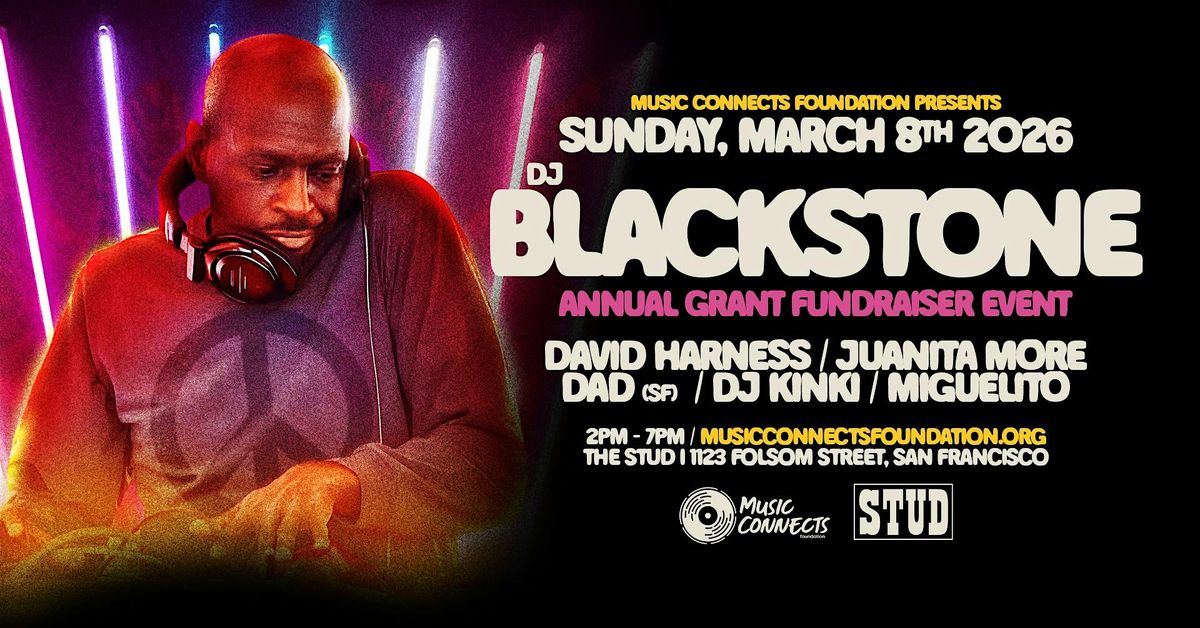 Music Connects Foundation hosts a fundraiser for the DJ Blackstone Grant on Sunday, March 8th at The Stud. Join us for a T-Dance from 2pm to 7pm featuring David Harness, Juanita More, DAD SF, DJ Kinki, and Miguelitooo. Come dance, connect, and help raise funds for this year’s DJ Blackstone Grant supporting the next generation of artists.