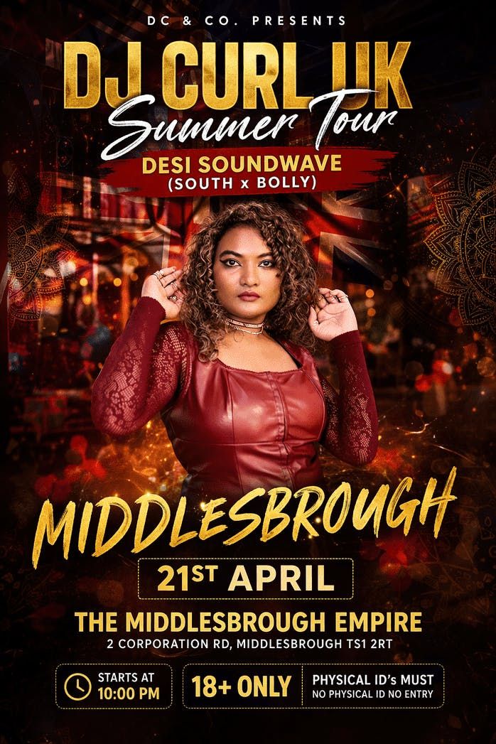 MIDDLESBROUGH – IT’S YOUR TURN 🔥🌴Get ready as the DJ CURL SUMMER TOUR pulls up with full force, bringing a night packed with South Indian beats and Bollywood fire! 🎧💃