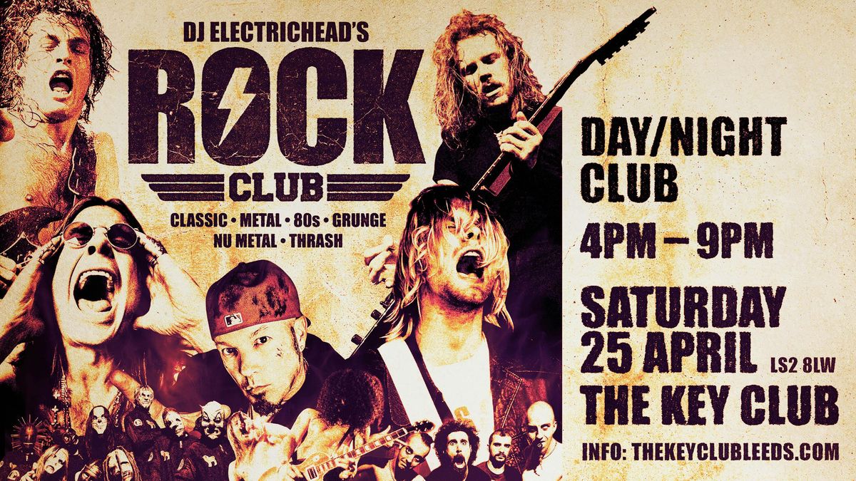 DJ Electrichead’s Rock Club takes over The Key Club - Leeds’ only full-time dedicated rock and alternative venue - for an afternoon/evening of wall-to-wall anthems, massive riffs and zero filler.