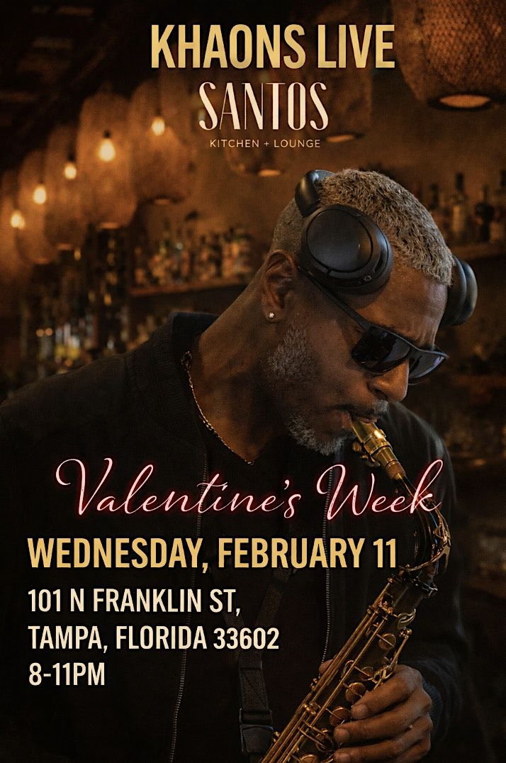 Experience Deep Grooves & Live Dance Floor Sax as DJ/Saxophonist Khaons takes over Santos Lounge in Tampa, FL on Wednesday February 1st, 8:00PM – 11:00PM.