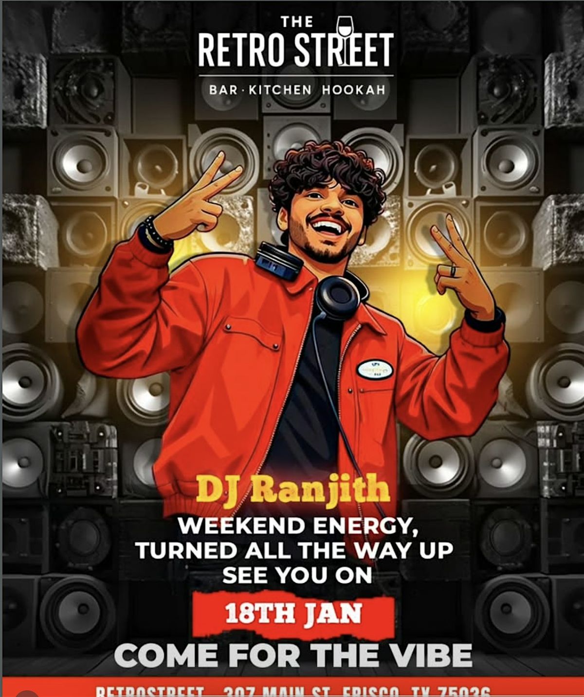 Get ready for an epic Sunday night filled with awesome beats and good vibes! Join us in person to dance the night away with DJ Ranjith spinning the hottest tracks. Bring your friends, your best moves, and let’s make it a night to remember. Don't miss out on the fun!