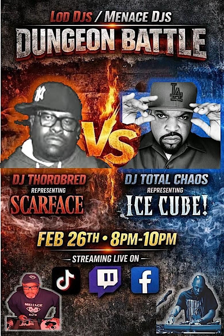 It's a Hip Hop Battle Between Scarface & Ice Cube Curated By Dj's Thorobred & Dj Total Chaos, It's going to be a Hip Hop Royal Rumble!