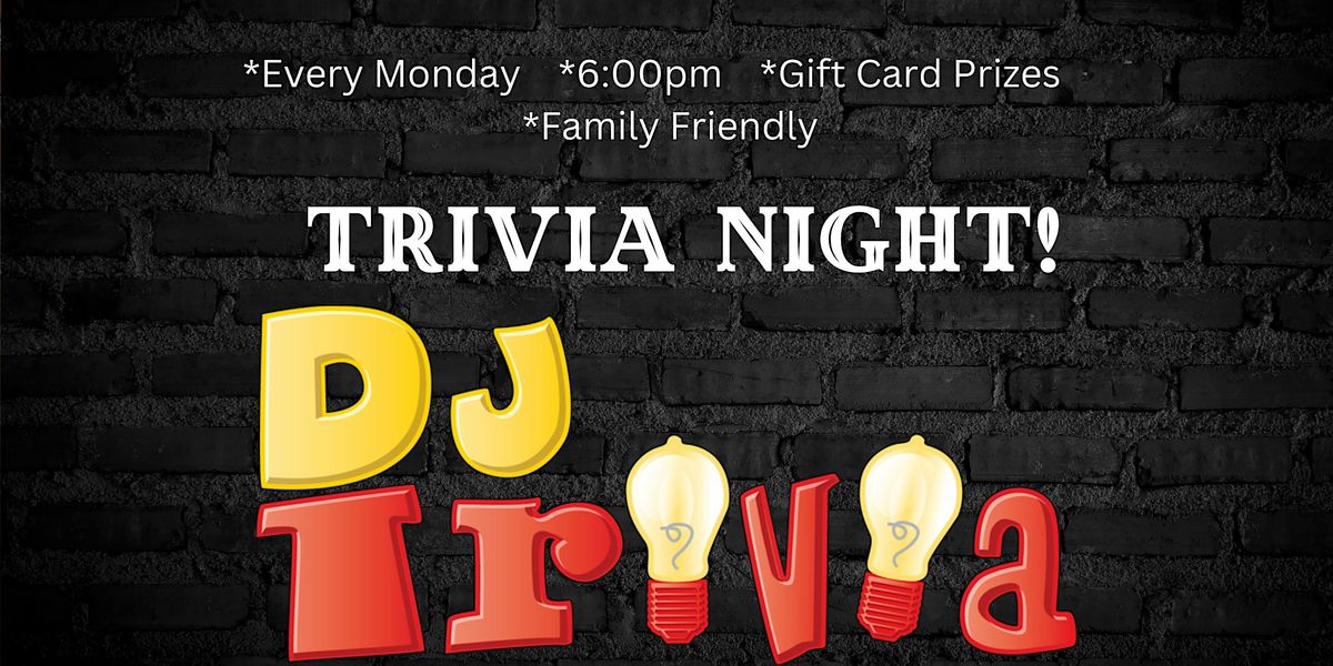 DJ Trivia is played every Monday at 6PM , is FREE TO PLAY and there are prizes for 1st, 2nd, and 3rd place teams!