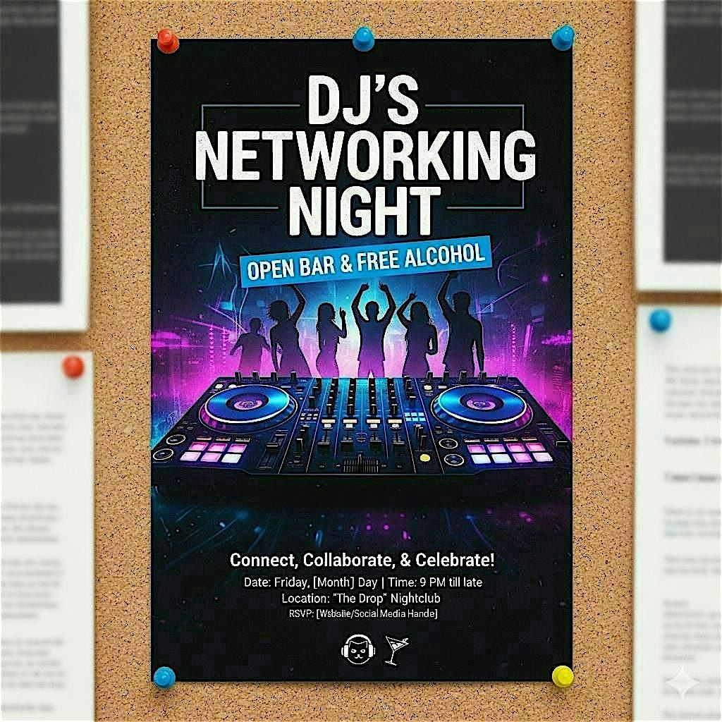 Ready to mix, mingle, and make connections? DJ's Networking Night is the perfect in-person event for meeting like-minded pros in a chill vibe. Whether you're looking to swap ideas, find collaborators, or just expand your circle, this night’s got you covered. Bring your energy, your stories, and your business cards! Let's turn up the networking and have some fun!