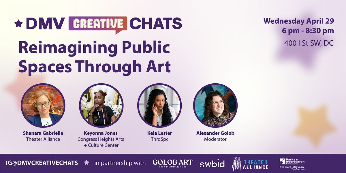 Join us for the inaugural DMV Creative Chats — a new monthly series bringing together artists, cultural leaders, and creative professionals from across DC, Maryland, and Virginia for candid panel conversations and real networking.
