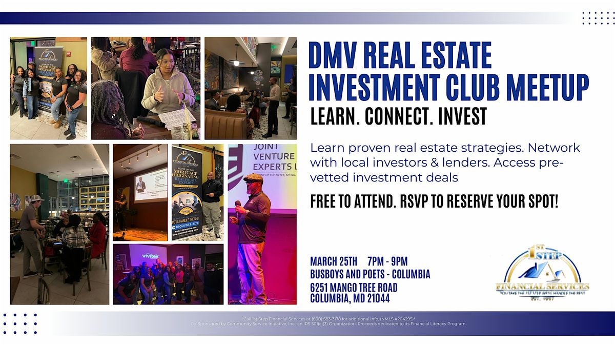 Join 1st Step Financial Services’ DMV Real Estate Investment Club for a hands-on meeting built for people who want to learn, connect, and find real opportunities.