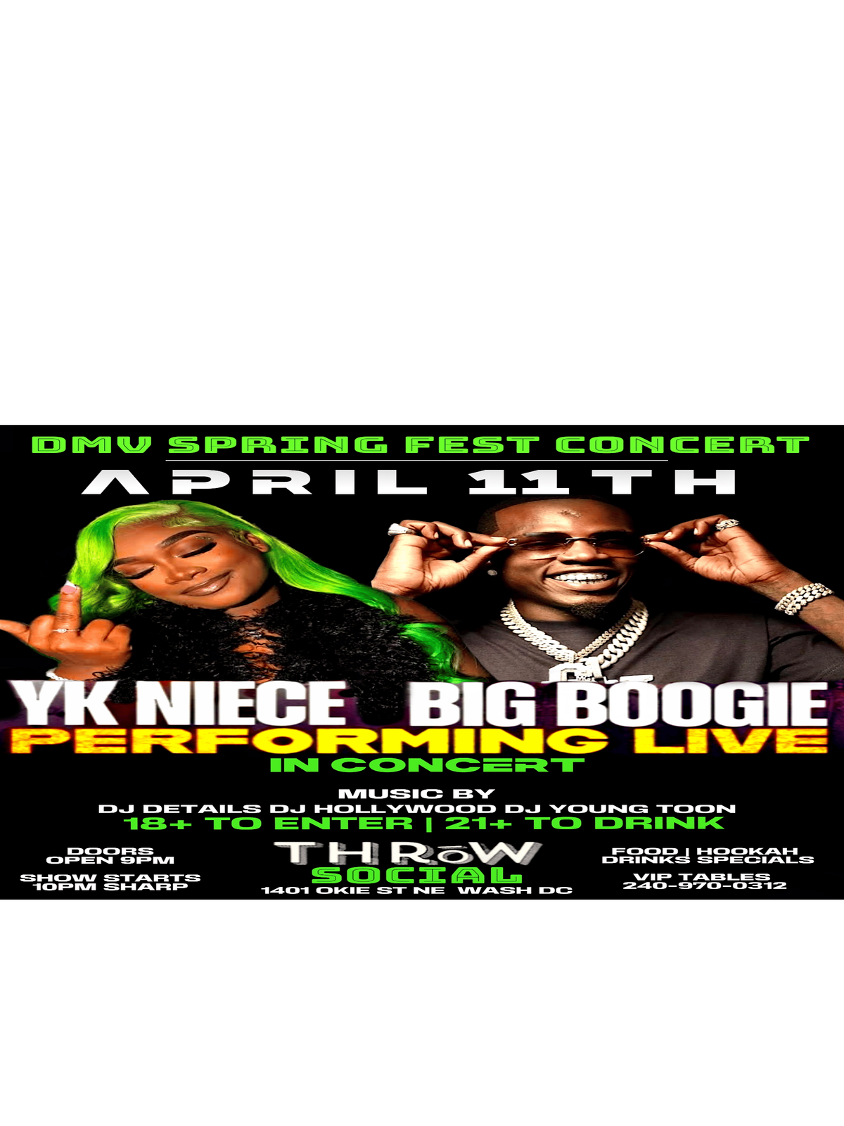 DMV SPRING FEST CONCERT YK NIECE BIG BOOGIE LIVE 240-970-0312 TABLES