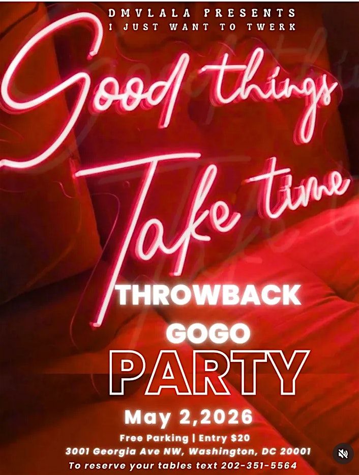 Good things take time… and this one will be worth itPull up for the throwback GoGo vibes, dancing, drinks, and energy all day.