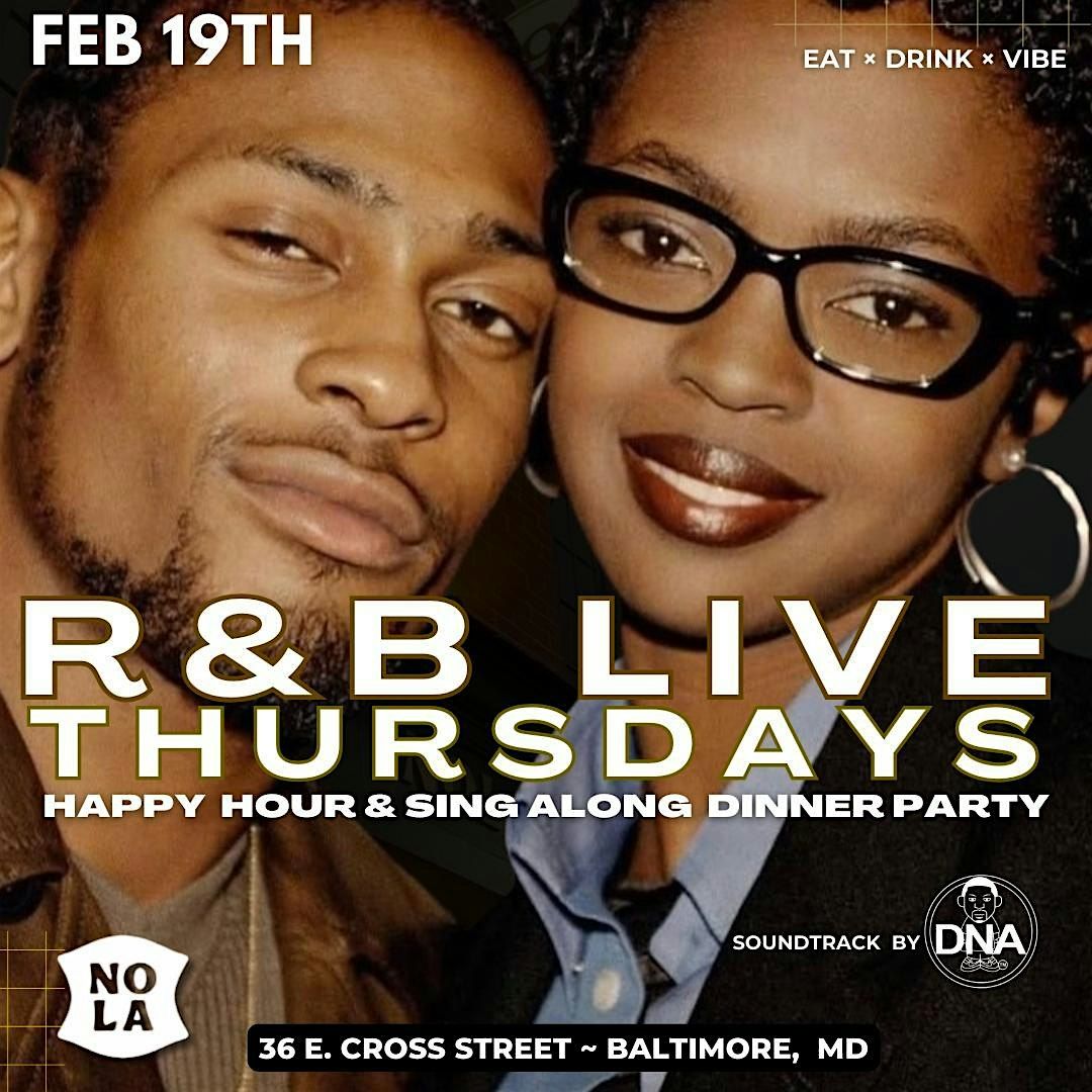 Join us Thursday; February 19th, for the cities #1 weekly vibe , R&B Live Sing Along Dinner party @ Nola Seafood in the heart of Federal Hill. Get ready to eat, dance, sip & sing along during an ultimate R&B Dinner experience. Join us for a dinner Party like no other, where delicious food meets infectious beats. It's time to turn your Thursday evening into an unforgettable memory featuring a special R&B set by Dj DNA!