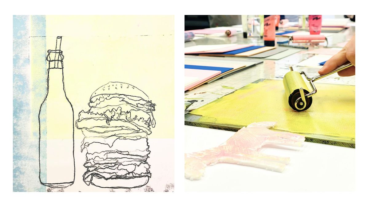 Ob Postkarte, Wandbild oder Notizbüchlein: In diesem Workshop könnt ihr Kunstwerke mit vier unserer bewährtesten Drucktechniken gestalten. Neben Monotypie und Styrenedruck habt ihr die Möglichkeit, einen individuellen, großen Moosgummistempel (20 x 20 cm) zu gestalten und damit auf Pappelholzplatten zu drucken. Beim Gellidruck lassen sich Oberflächenstrukturen und kleine Gegenstände in spannender Weise aufs Papier bringen. Es sind keine Vorkenntnisse nötig. Kommt vorbei und druckt euch glücklich!