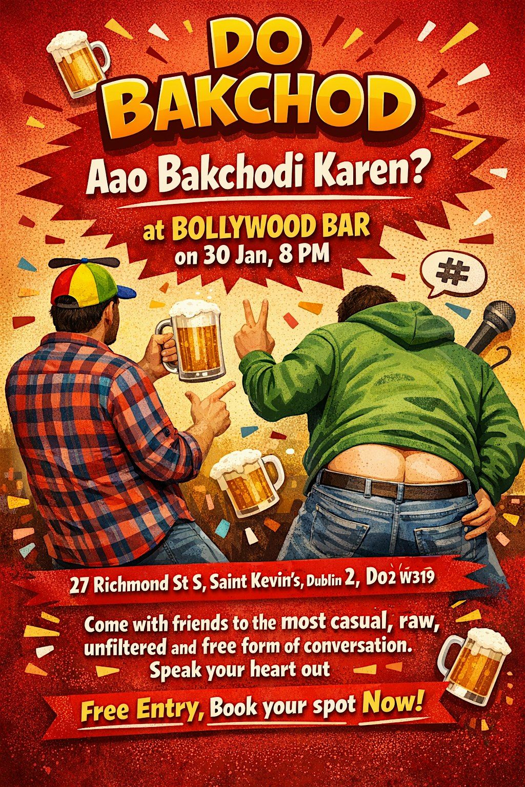 We promise you unlimited Bakchodi of fun, Roasting, adult comedy, Shayri - whatever you can think of.