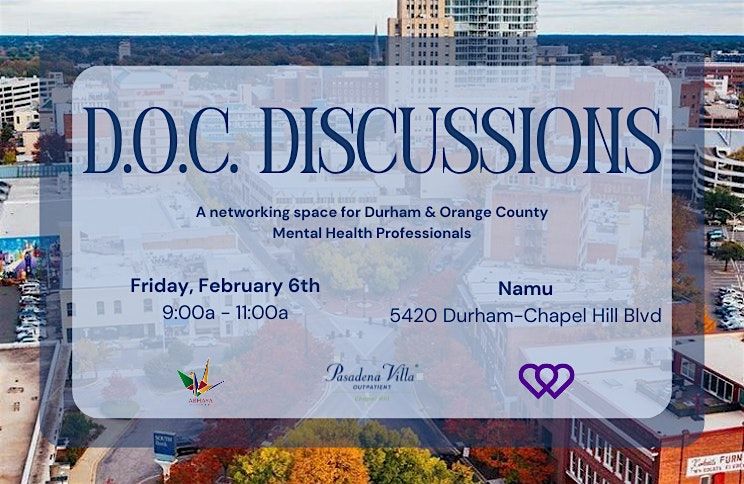 Join us for an informal networking event for Durham and Orange County clinicians at Namu from 9a - 11a. This is a great opportunity to network and engage with other local clinicians, and to share all about your programming, services, and groups.