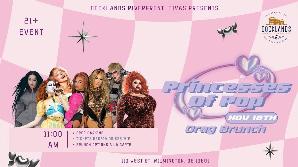 The Divas & Docklands present Princesses of Pop Drag Brunch taking place on November 16th at 11 am! An exclusive brunch menu and Drink specials will be available while you enjoy the show, Hosted by Elektra Ryan!!