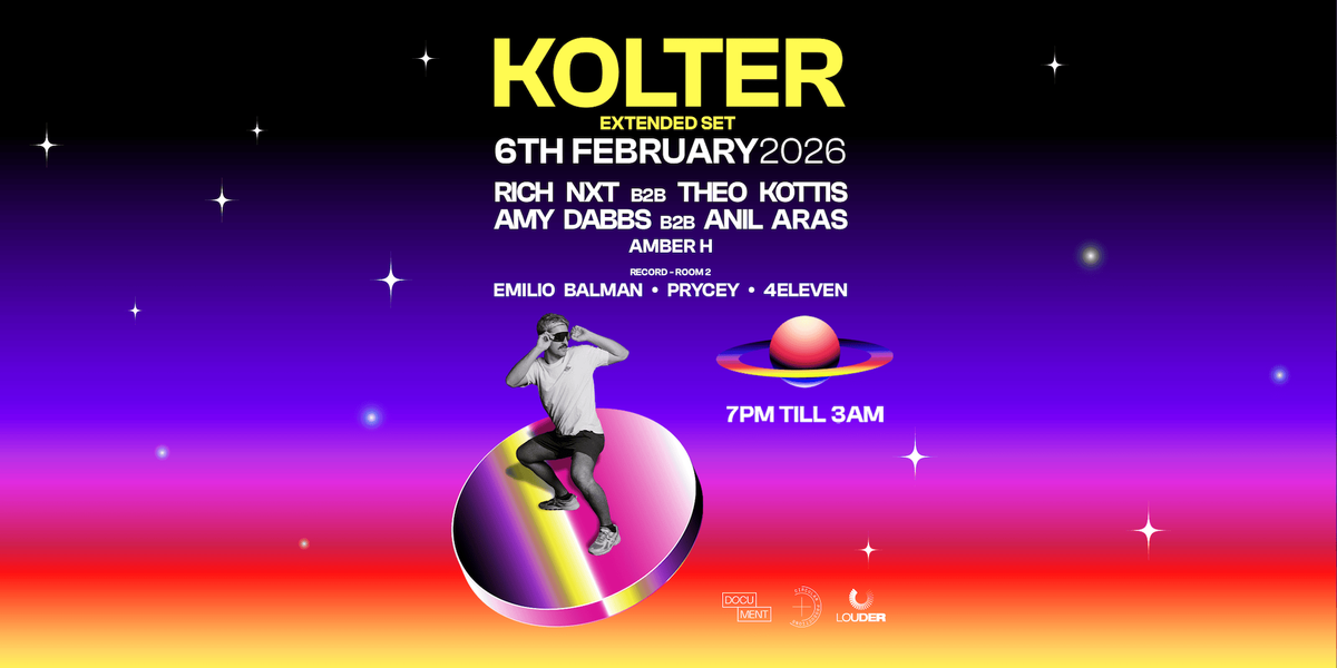 Cologne based Kolter (fka DJOKO) is shaping the future of house music. As a producer, DJ, and HOOVE label head, he has released on top labels, collaborated with artists like Chris Stussy, and delivers genre blending sets from big room energy to deep melodic grooves across global stages including DC-10, Rex Club, and Tomorrowland.We’re excited to welcome him for an EXTENDED SET to Document on Friday 6th February, joined by a lineup of some of the hottest talent in house music, including Rich NxT b2b Theo Kottis, Amy Dabbs b2b Anil Aras & Amber H.