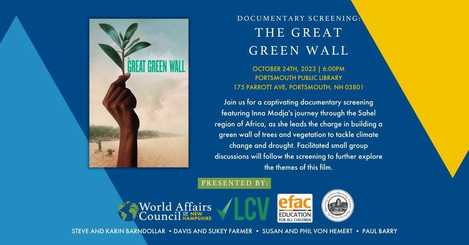 At the conclusion of the film, the audience will break into facilitated small group conversations lead by leaders of Education for All Children, Rain for the Sahel and Sahara, the League of Conservation Voters, and the World Affairs Council of New Hampshire. Each group will focus on different areas of the film and will spark lasting community conversations.